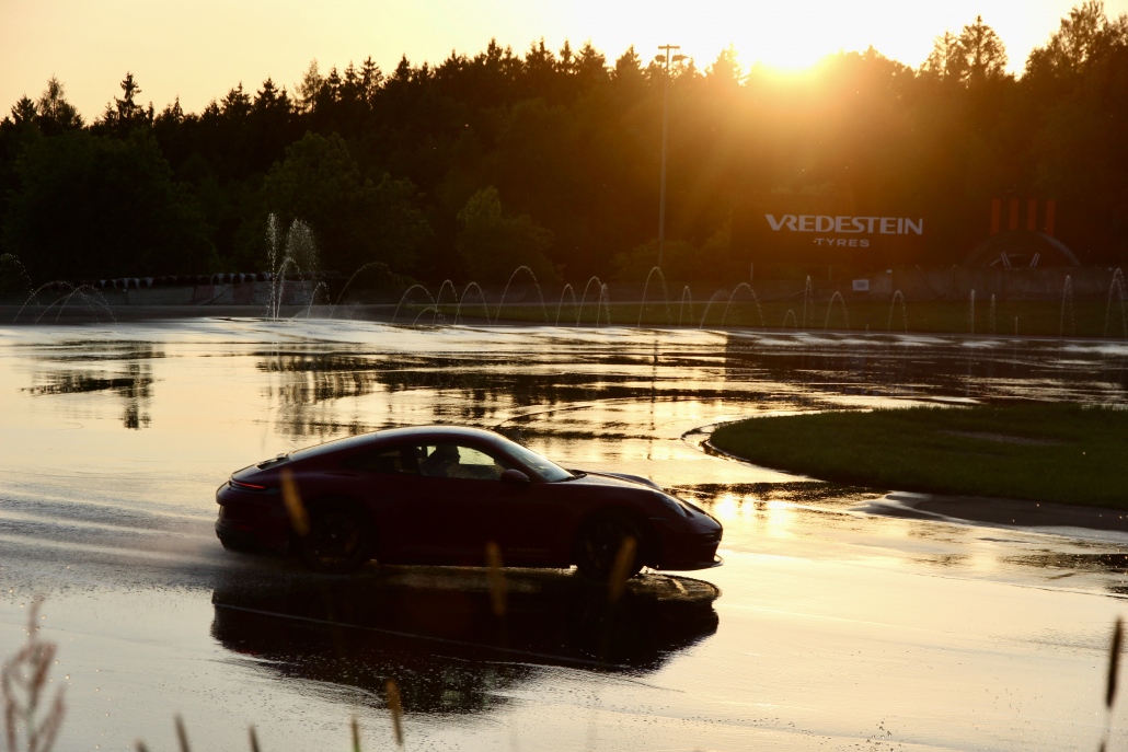 Driften auf bewässerten Fahrbahnen
